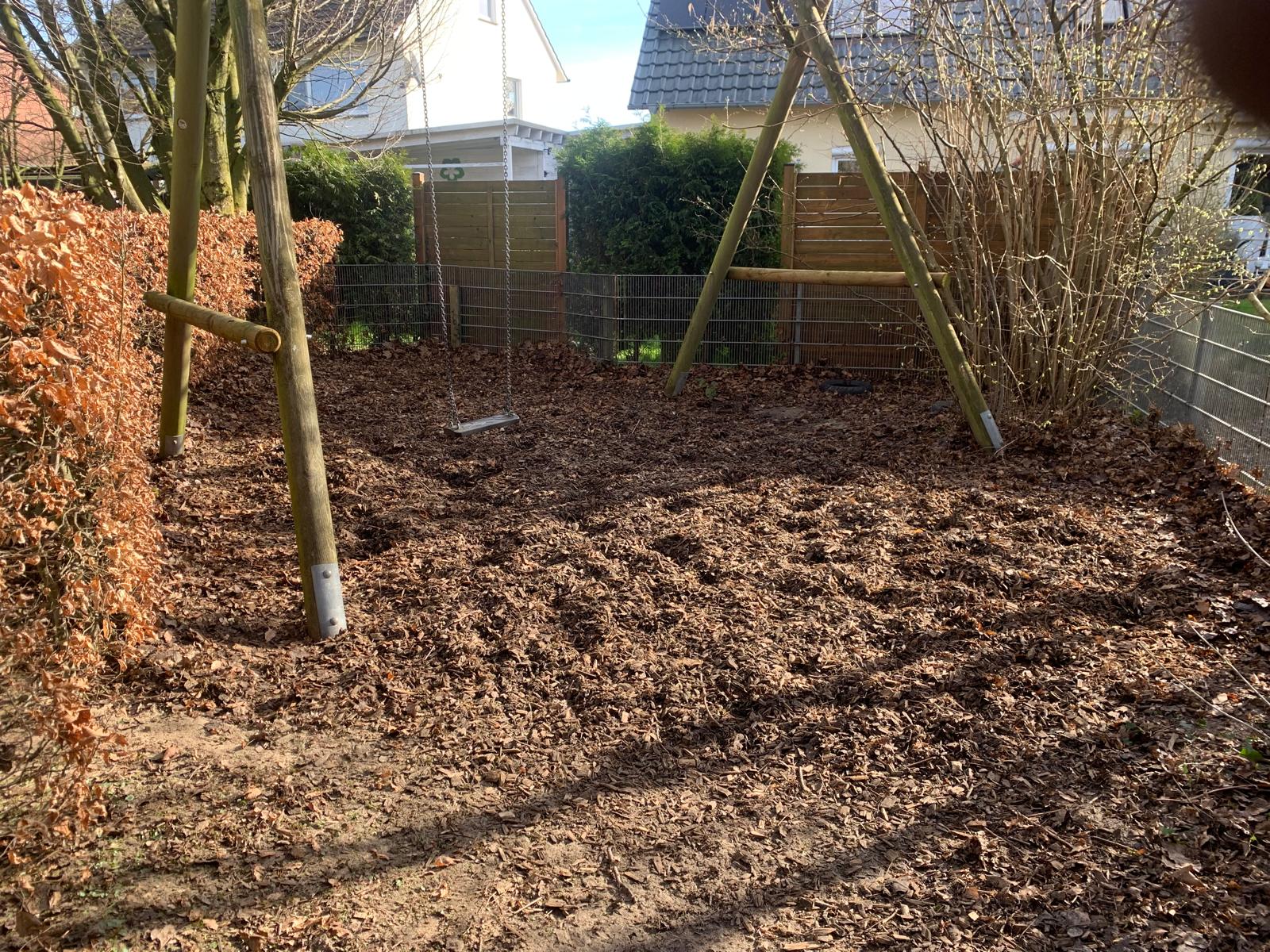 Mit der Zeit verliert die Hackschnitzeldecke an Volumen und Schutzwirkung. Wir füllen fehlendes Material fachgerecht auf, um die optimale Fallschutzhöhe wiederherzustellen und die Sicherheit zu gewährleisten.